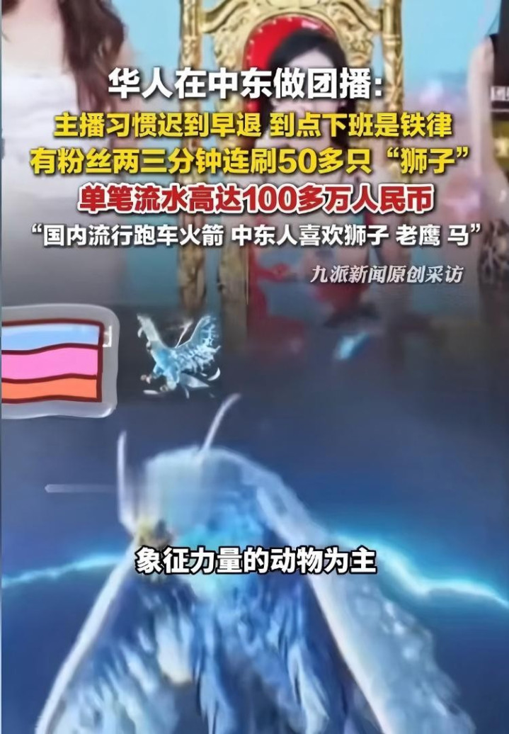 近日,中东直播间掀起疯狂打赏热潮:5分钟内百万人民币砸向屏幕,狮子、骆驼等象征力量的虚拟礼物刷屏,单场直播最高流水突破40万美元。中国团播团队在当地运营时发现,超八成用户为男性,其打赏逻辑与国内截然不同——不为陪伴主播成长,只为“面子”“国家荣誉”甚至榜单排名而战。